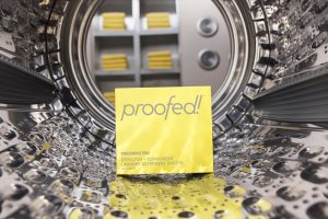 Image credit: I’m Plastic Free Founder, Simona Paganetto, testing the proofed! fragrance-free laundry detergent sheets.